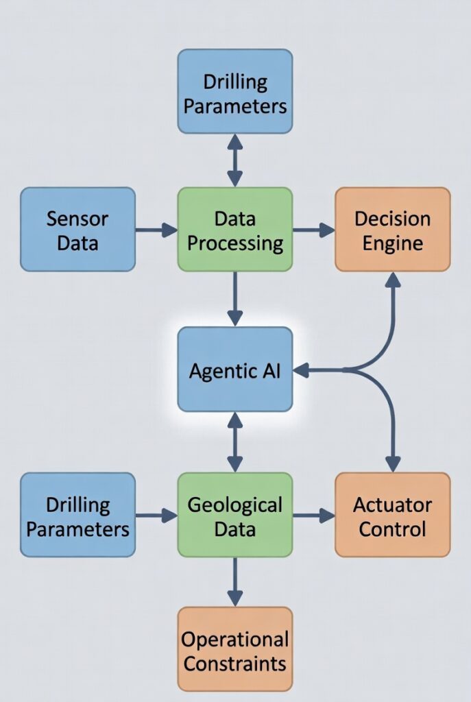 Visual: Diagram illustrating agentic AI workflow in real-time drilling decisions.