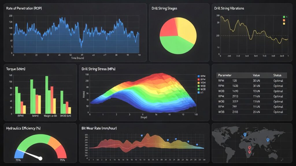 - Anomaly detection: Machine learning flags deviations (e.g., torque spikes, pressure anomalies) and initiates corrective actions (e.g., reduce ROP, adjust mud weight).