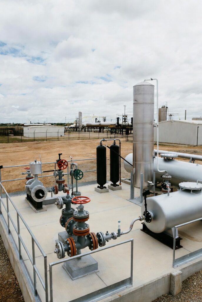 Visual: Onshore well pad with components subject to LDAR surveys (valves, flanges, tanks, separators).
