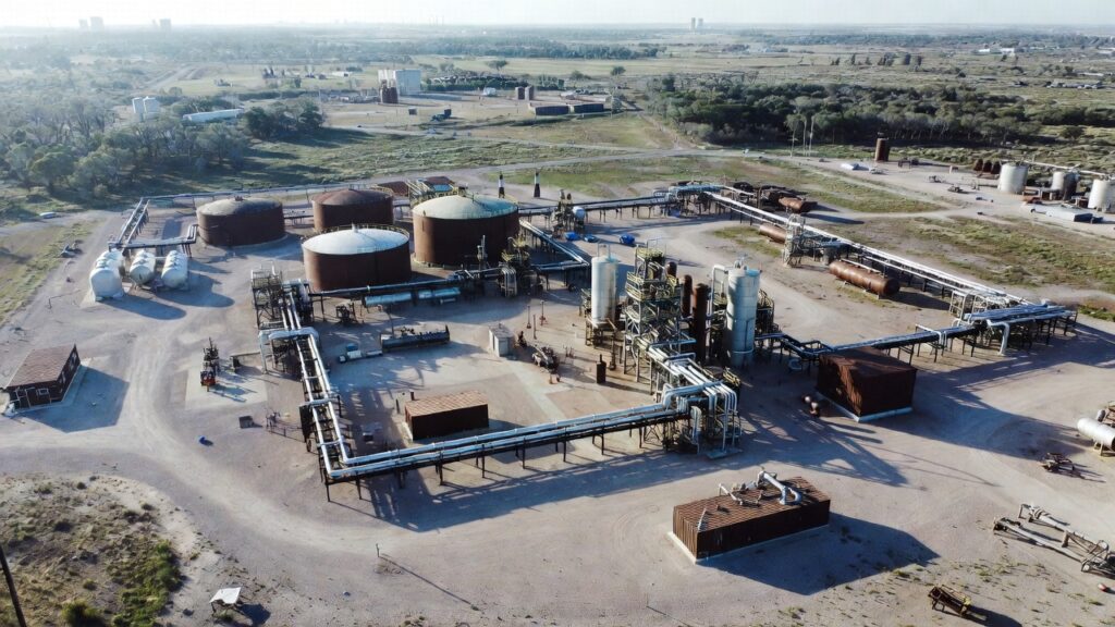 Visual: Aerial view of onshore oil and gas facility cluster, typical of sites in LDAR field trials.