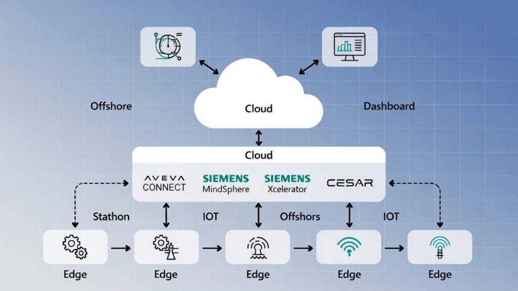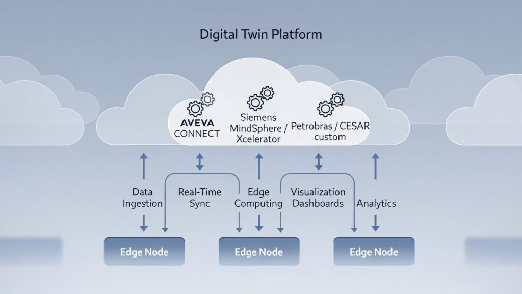 - Cloud/edge hybrid platform (e.g., AVEVA, Siemens, or custom twins used by Petrobras/CESAR in pre-salt analogs).