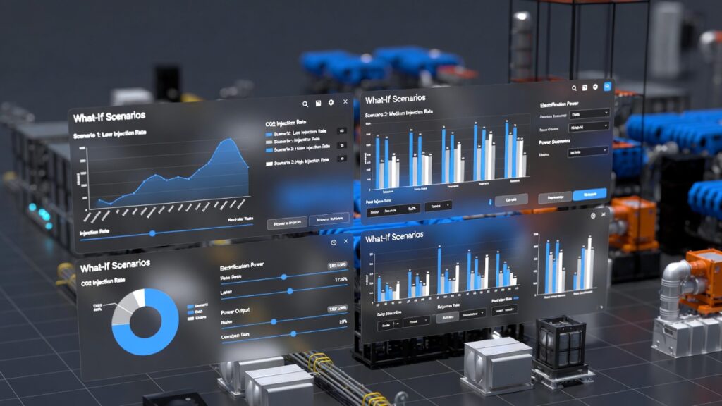 One twin can model both residual hydrocarbons (for enhanced recovery) and CO₂ injection simultaneously, while tracking energy consumption of electrified equipment. This hybrid approach maximizes storage capacity and minimizes the carbon footprint of ongoing operations.