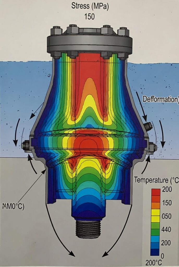 While pure CFD handles fluids/heat transfer, couple it with FEA (e.g., ANSYS Fluent + Mechanical, COMSOL Multiphysics) for full thermo-mechanical response: import CFD-derived temperature fields to calculate differential expansion, stresses in seals/housings, and wellhead movement.This reveals risks like mismatched expansion causing fit variations in valve assemblies or connector deformation under HPHT loads.