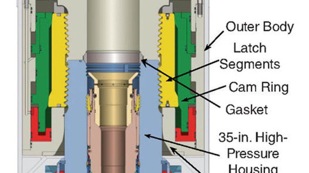 Fig. 1: Schematic of an HPHT subsea wellhead system, illustrating high-pressure housing and latch mechanisms critical for regulatory compliance.