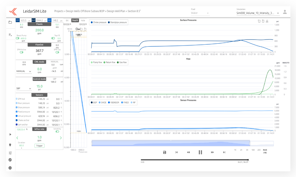 Fig. 4: Drilling simulation dashboard for HPHT modeling, showing real-time pressure and flow analytics.