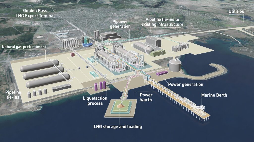 1. Golden Pass LNG – Texas (18 MTPA, Startup 2026–2027)Golden Pass LNG, a joint venture between QatarEnergy (70%) and ExxonMobil (30%), is one of the most advanced U.S. Gulf Coast expansions.