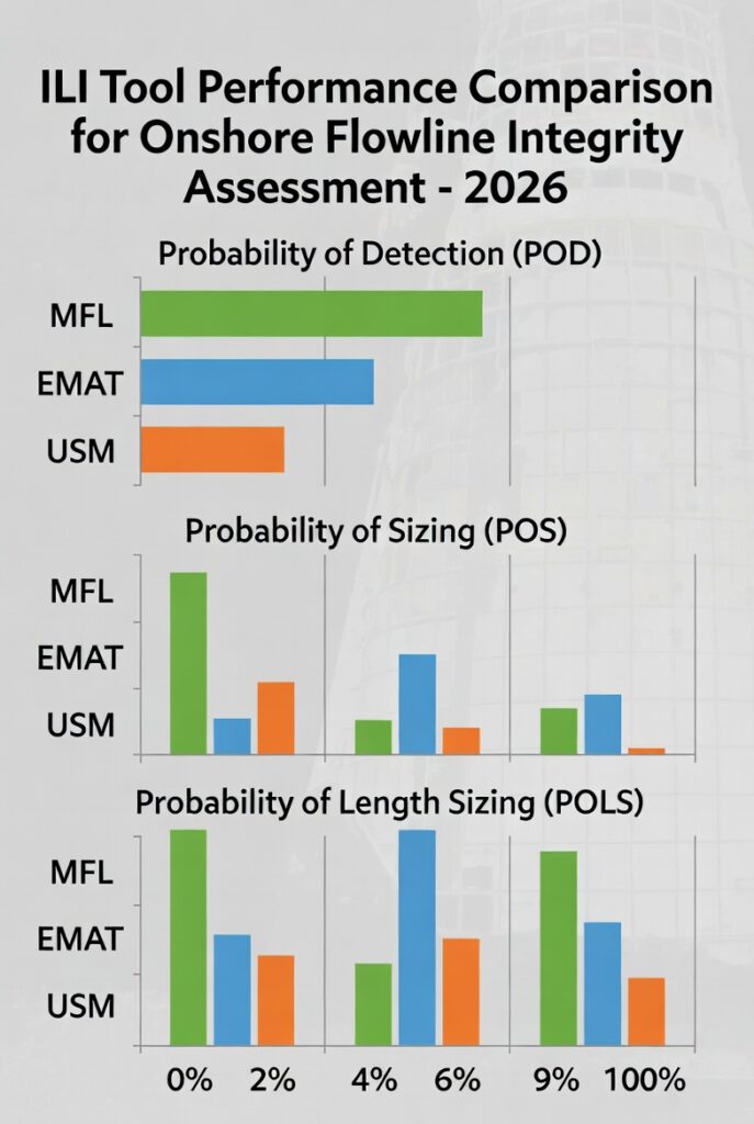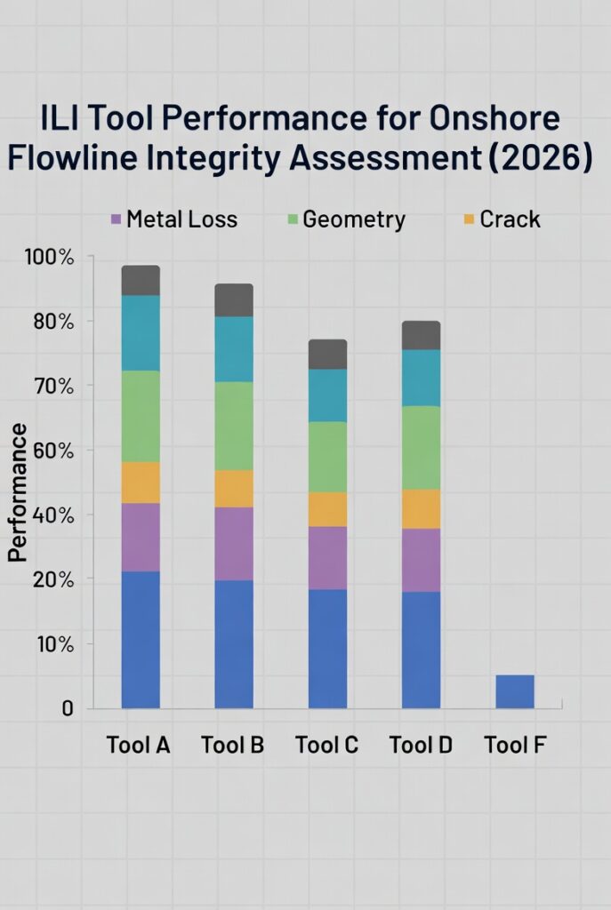 This chart compares ILI tool performance for onshore flowline integrity assessment in 2026.