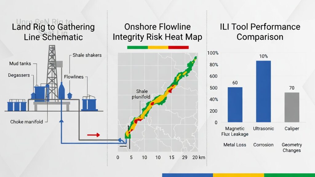 3. In-Line Inspection (ILI) Tool Comparison for Onshore FlowlinesILI remains the gold standard for assessing gathering line integrity, but tool selection depends on diameter, wall thickness, bend radius, and product type.