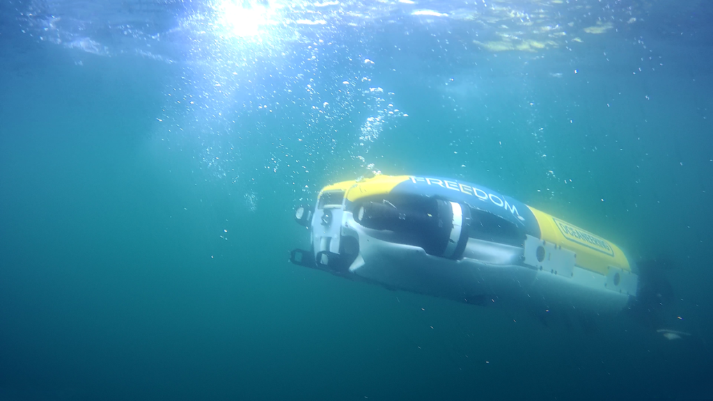 Oceaneering’s Freedom AUV in action during a pipeline inspection pilot—demonstrating low-altitude tracking and high-resolution sensor data capture over subsea lines.