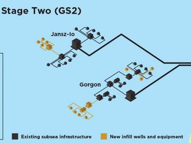 Visual: Gorgon Stage Two/Three field layout diagram – Map of existing subsea infrastructure, new infill wells, manifolds, and tiebacks from Jansz-Io to Gorgon—illustrates brownfield expansion.