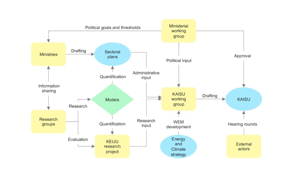 (Above: Flowchart of energy policy development process involving research groups, ministries, models, and evaluation—illustrating IEA’s broader influence on global forecasting and policy for fossil fuels and clean energy.)